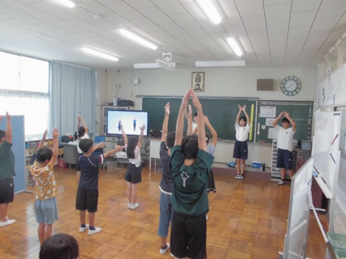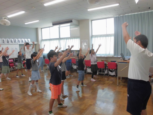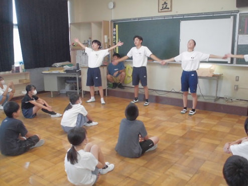 2025年9月26日 19時51分9月26日(金)の5時間目に、浅羽中学校から中学3年生が来てくれました。10月25日(土)の運動会「光と大地のつどい」に向けて、ラジオ体操のポイントを教えていただいたり、実際にやって見せてくれたりして交流しました。いろいろな学年の教室から元気な掛け声が聞こえてきて、楽しそうに活動しました。本番の「光と大地のつどい」で、かっこいい姿が見られるとよいです。